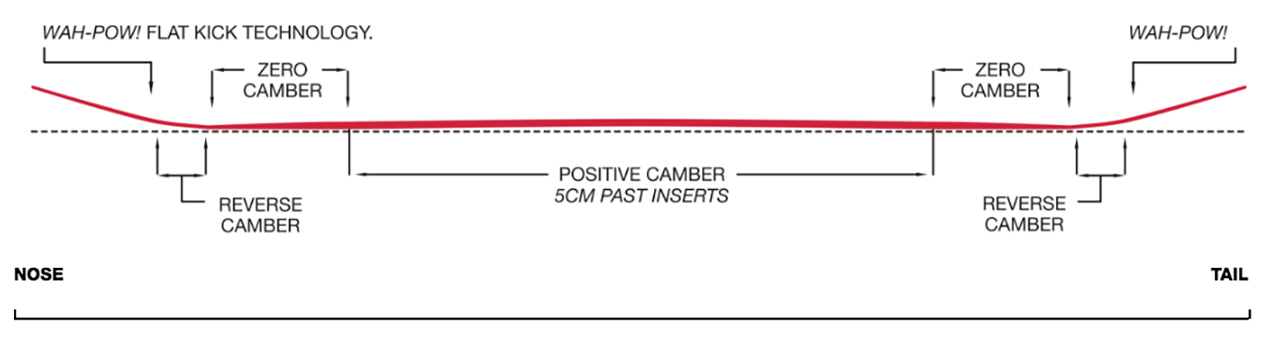 Profile: All-Terrain V2 (Camber Underneath and Between the Feet, Rocker on Contact Points, and Flat on Nose and Tail)