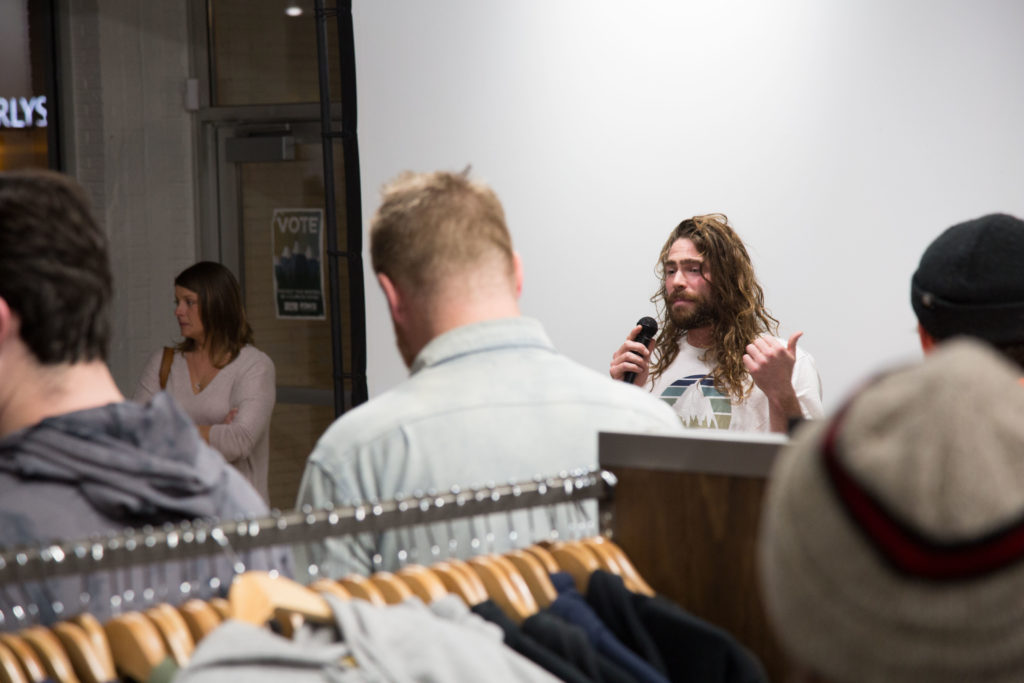 The night started around 6 p.m. and entailed a free nacho bar catered by D’Amico & Sons, as well as an open bar to those 21 years of age and older. Music played by Minnesota locals D.Lee, FlashYorden, and Ole Soles set the fun, laid-back vibe as patrons shopped and mingled. Throughout the night, Burton Minneapolis employees mingled with customers and helped those who were shopping. Burton sent in a few employees from corporate see what Minneapolis was all about and to press canvas bags for everyone who wanted one with Burton logos and “Minneapolis” printed on them.
