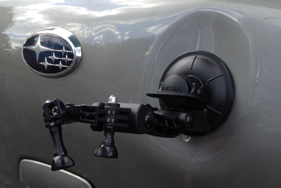 Professional body mechanics use high tech tools, dry ice (which can result in paint chipping), and other means to remove dents from doors. The average person, if they’re smart enough, would us a plunger. Dana on the other hand, is a genius – he grabbed his GoPro Suction Cup Mount and pulled the dent out to near perfection.