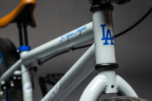 It may still sting and I apologize for your loss, but the Dodgers Team BMX Bike from Framed is one you shouldn’t pass up if you love LA and BMX. For starters, this bike looks incredible. It features a sleek white colorway with a cursive letter detailing along the top tube and the Signature LA logo on the head tube in rich Dodger-blue. The handlebars sport the same bright blue with contrasting white grips.