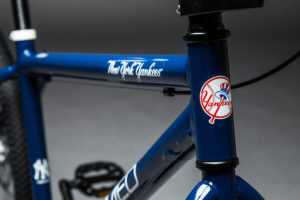 Like the others, the frame is made of Hi-Ten steel for maximum longevity and is available in both freestyle designs and a Framed Twenty6er cruiser design. The Yankees Twenty6er features 26 in. tires and a larger aluminum frame that is perfect for cruising around the city on gameday. It also features the secondary Yankees logo on the headtube.