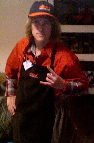 The proof is in the bread-pudding: Brennen in his Smith Grocery Store bakers uniform.