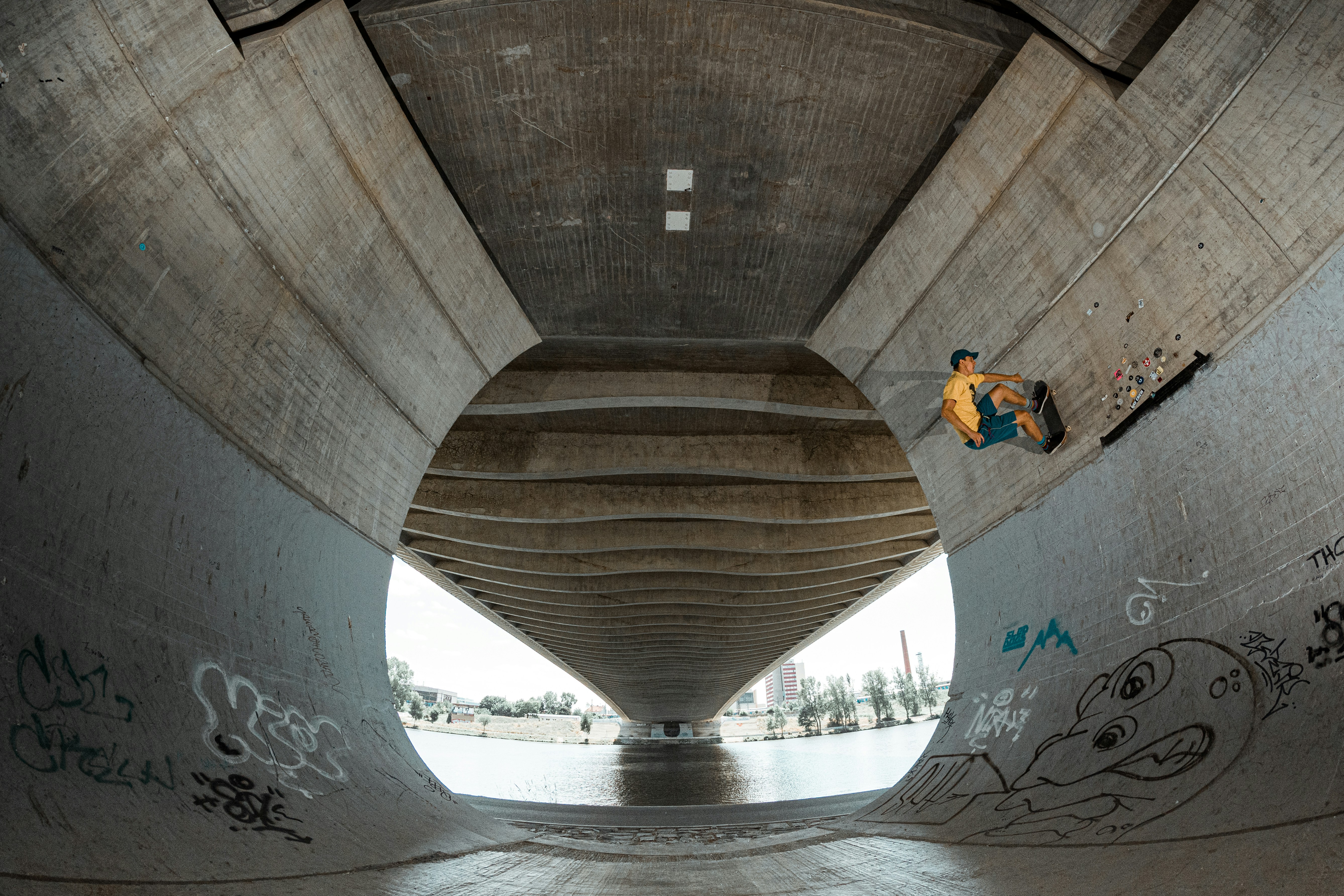 Originally emptied out swimming pools, bowls are skateable areas with walls that wrap around 360 degrees, forming a bowl-shaped arena. Bowls are commonly found in many skate parks.