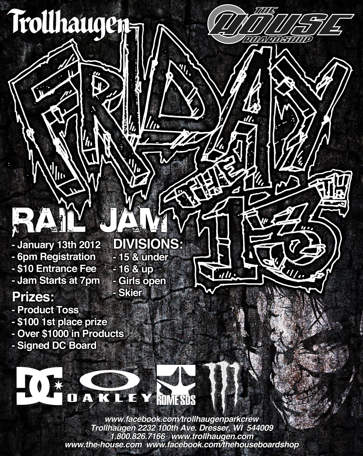 Rail Jam this Friday, January 13th at Trollhaugen, be there or be square. Registrations starts at 6pm and the comp starts at 7pm. After the Rail Jam head up to the bar (if your 21 or older) and listen to some tasty jams provided by Saving Starz.