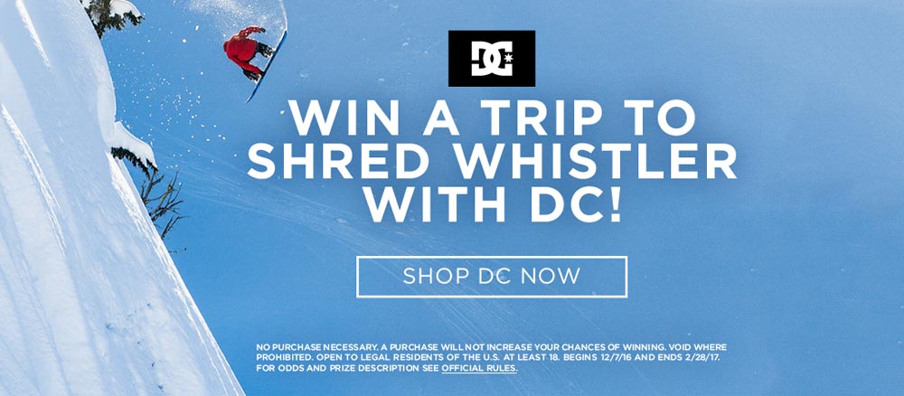 Win a trip to shred Whistler with DC! Purchase any DC Boots, Snowboards or Outerwear from The House and be automatically entered!